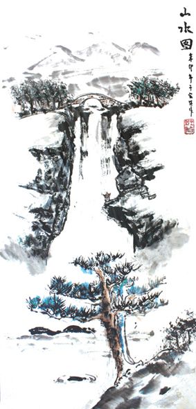 國(guó)畫:山水圖 作者:車隊(duì) 彭士凱