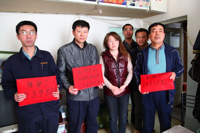 機(jī)修車(chē)間吊車(chē)工任秀花、煉鐵廠維護(hù)車(chē)間加壓工栗健群夫妻倆都在公司工作,今年一月,不幸降臨到這個(gè)原本幸福的三口之家,他們剛剛20周歲的兒子經(jīng)檢查確診患上了“白血病”,需要花費(fèi)巨額的醫(yī)藥費(fèi)進(jìn)行治療。任秀花所在的機(jī)修車(chē)間,得知這一情況后,工會(huì)小組提出了捐款倡議,大家紛紛伸出了援助之手,僅僅兩天時(shí)間,機(jī)修車(chē)間、技術(shù)中心、機(jī)動(dòng)處共捐款19850元。軋鋼廠以及栗健群所在的煉鐵廠的職工也自發(fā)的開(kāi)始了捐款活動(dòng),煉鐵廠捐款23980元,軋鋼廠捐款18455元,僅僅不到一周的時(shí)間,共捐款62285元。