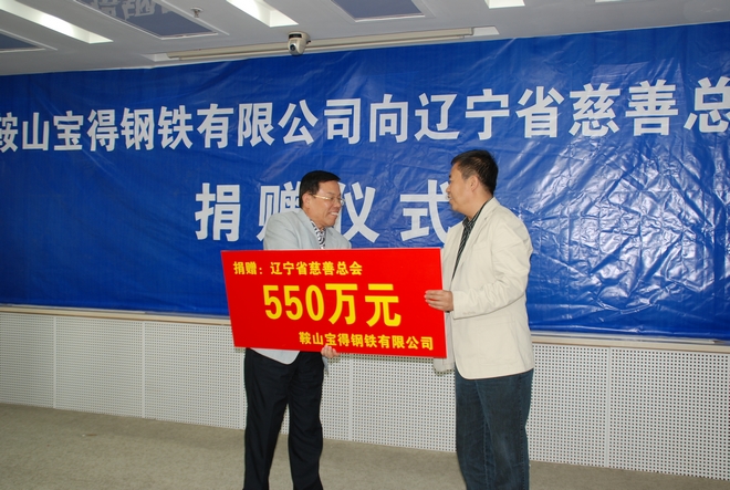 9月23日,公司助學(xué)助老捐贈儀式在省慈善總會隆重舉行。公司總經(jīng)理張鐵漢向省慈善總會捐贈人民幣550萬元,這筆善款將用于鞍山市的助老、捐資助學(xué)等項(xiàng)目。