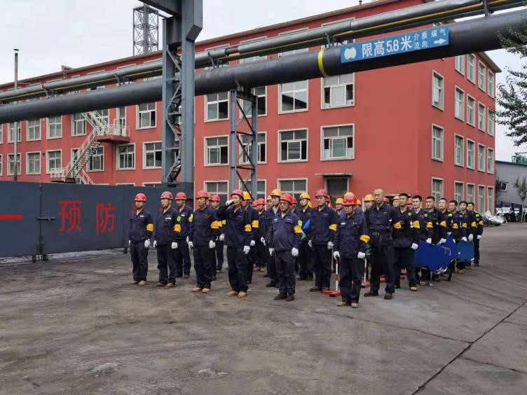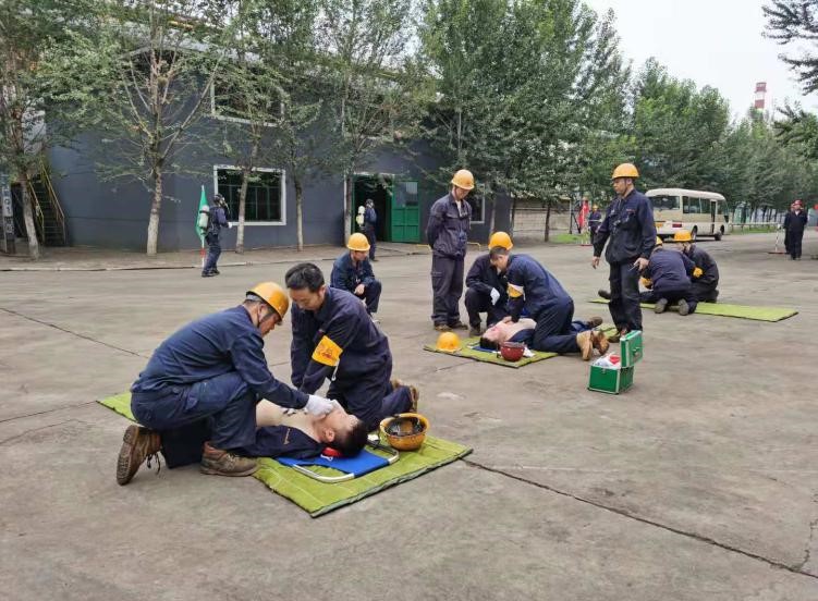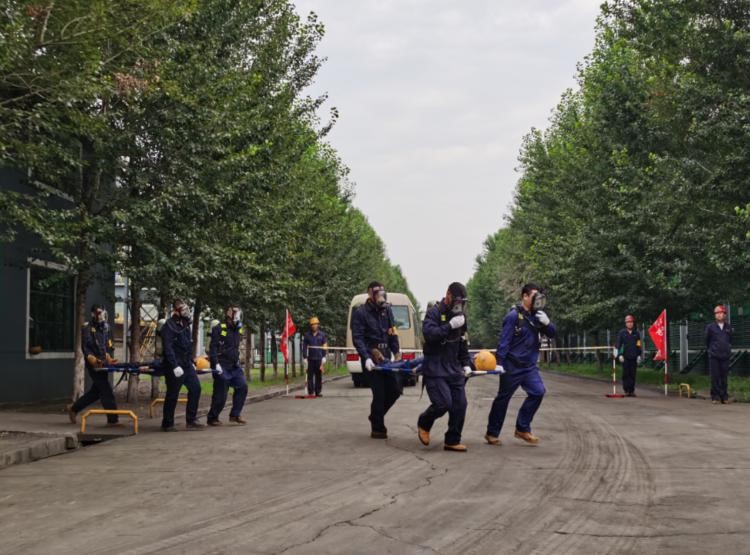 “報(bào)告馬廠長:我是當(dāng)班維護(hù)班長曹雷,9點(diǎn)35分左右班內(nèi)三名員工在煤氣閥組平臺巡檢過程中發(fā)生煤氣中毒事故,請求立即支援”……;“請搶險(xiǎn)救援組、安全警戒組、醫(yī)療救護(hù)組…立即趕赴事故現(xiàn)場集結(jié)”;“報(bào)告總指揮:搶險(xiǎn)救援組10人到達(dá)現(xiàn)場,6套呼吸器及3副擔(dān)架救援裝備完好,可正常使用”……;“各救援小組按預(yù)案規(guī)定程序及商定的實(shí)施方案,立即展開救援行動(dòng)”……;“報(bào)告總指揮:三名傷者已成功救出,兩人中毒較重,一人較輕,……”;“報(bào)告總指揮:煤氣泄漏部位搶修完畢,已無泄漏現(xiàn)象,設(shè)備可正常運(yùn)行”……。隨著一條條救援指令的下達(dá),現(xiàn)場警戒、現(xiàn)場救援、傷員急救、設(shè)備搶修、現(xiàn)場清理及組織生產(chǎn)恢復(fù)等過程緊張、有序地完成,實(shí)戰(zhàn)演練圓滿結(jié)束。